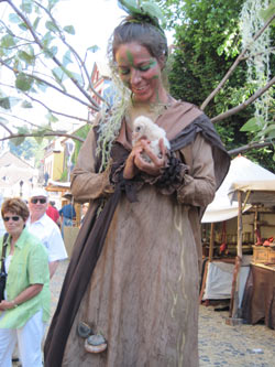 zarte Begegnung zwischen Schleiereulenbaby Mogli und der Baumfee Eluna.